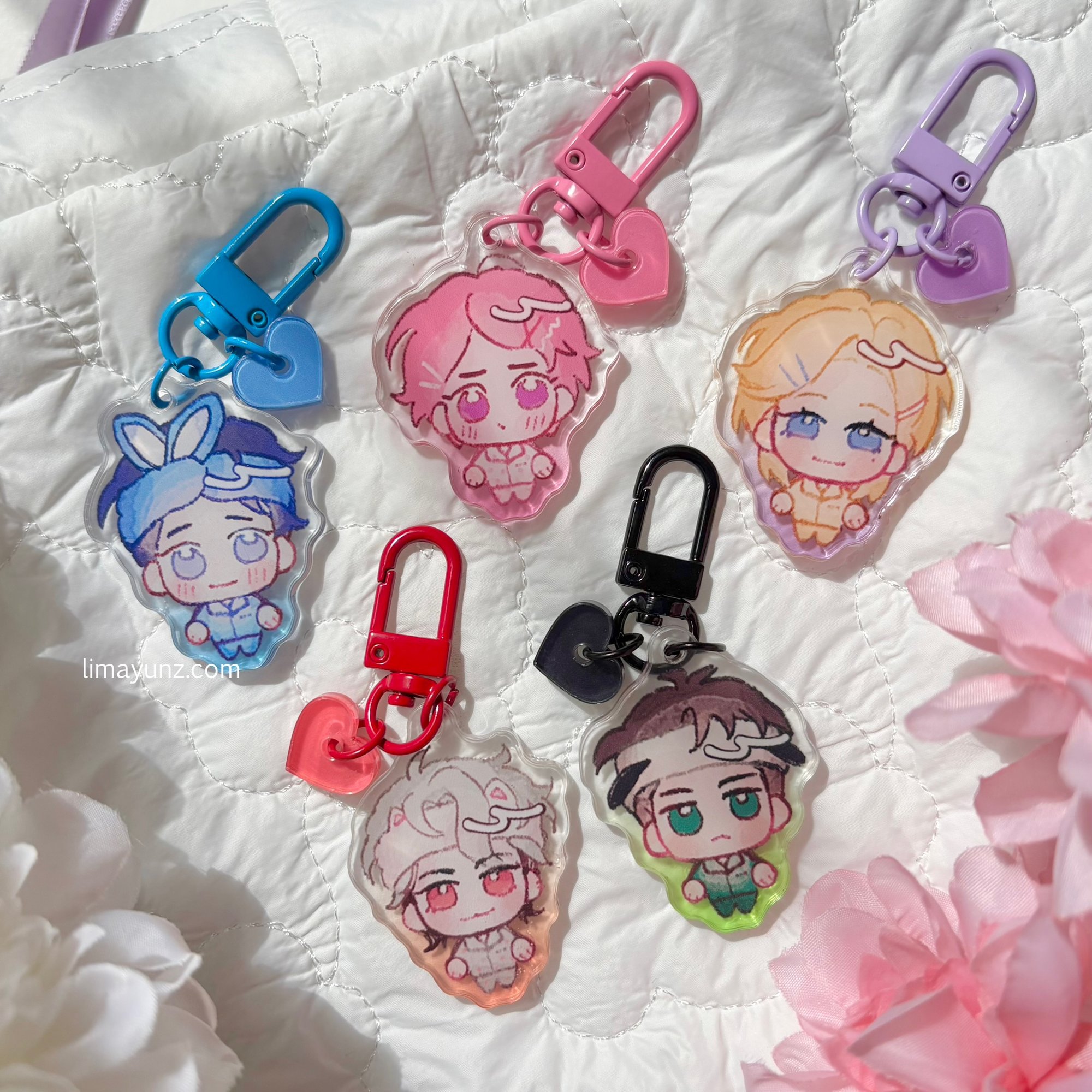 - comes with acrylic hearts with their signature colors